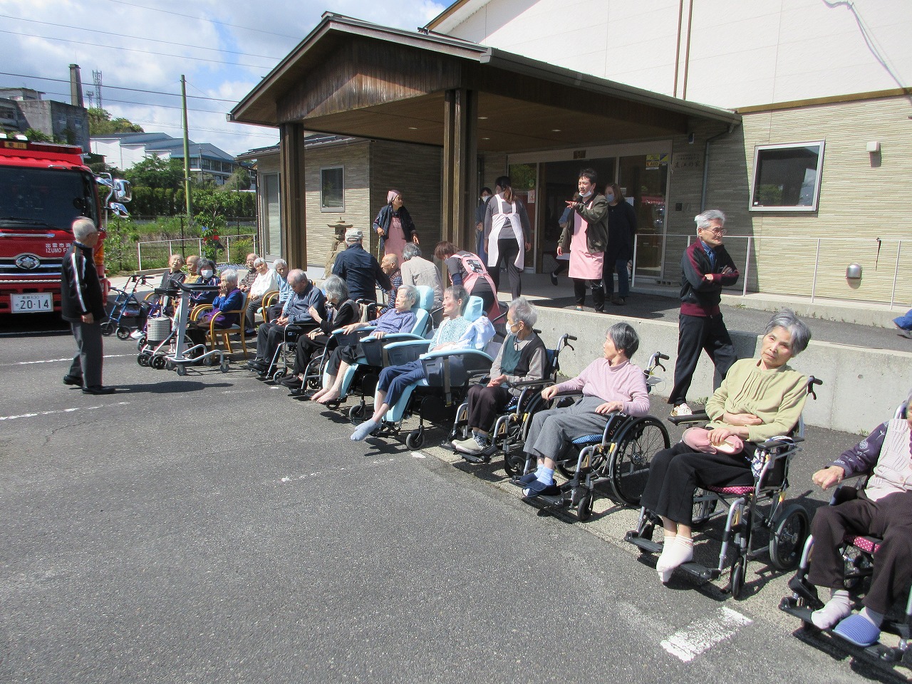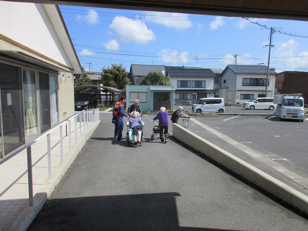 この日は天気が良かったので、駐車場を避難場所として想定して行いました。
