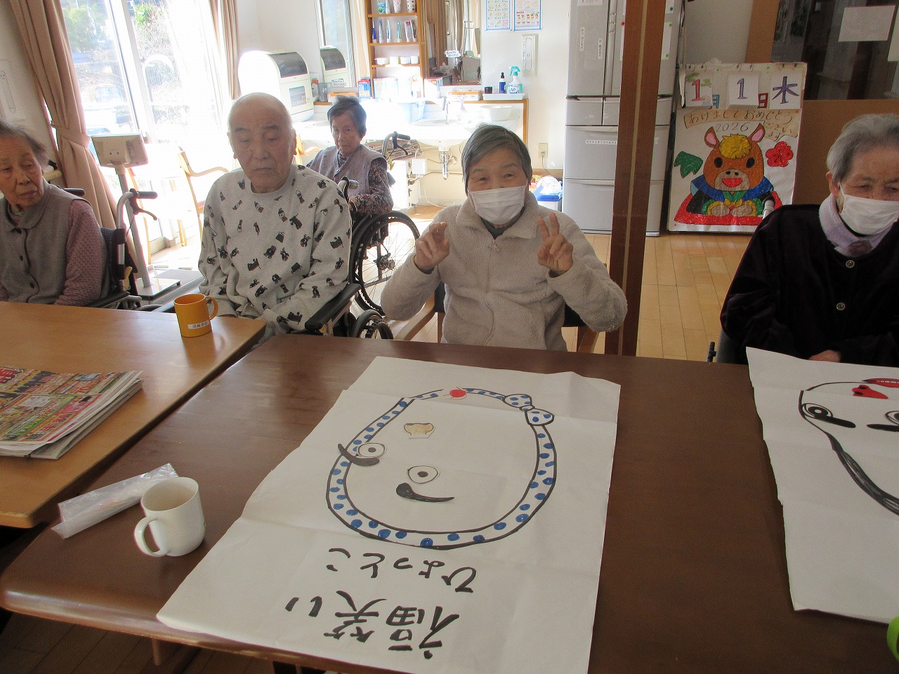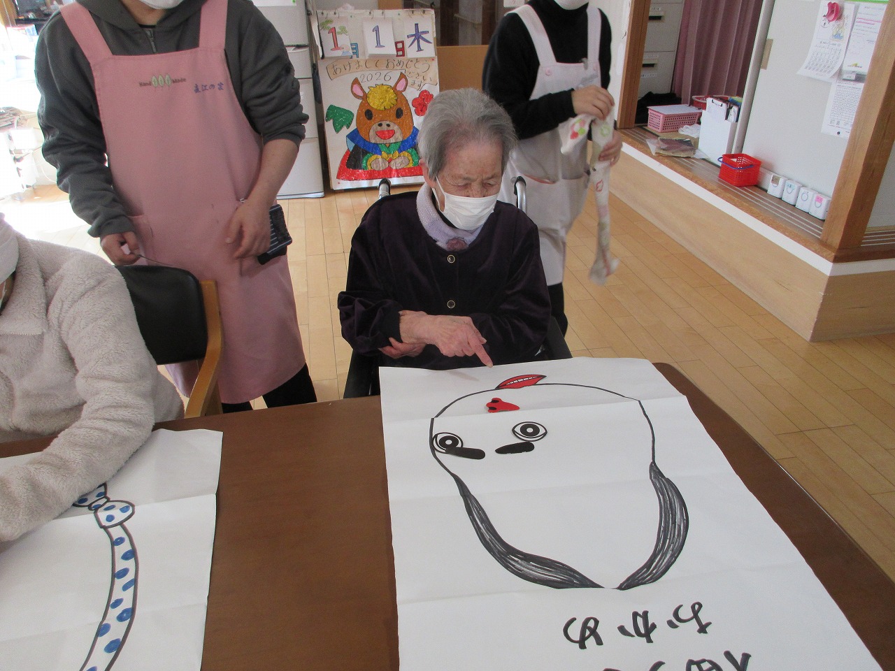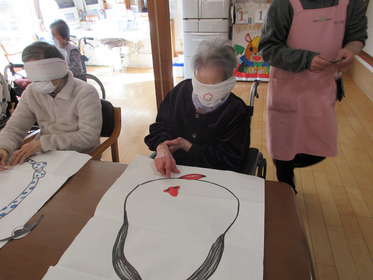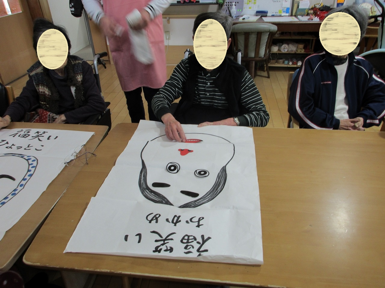 元旦、利用者様と福笑いをして過ごしました。