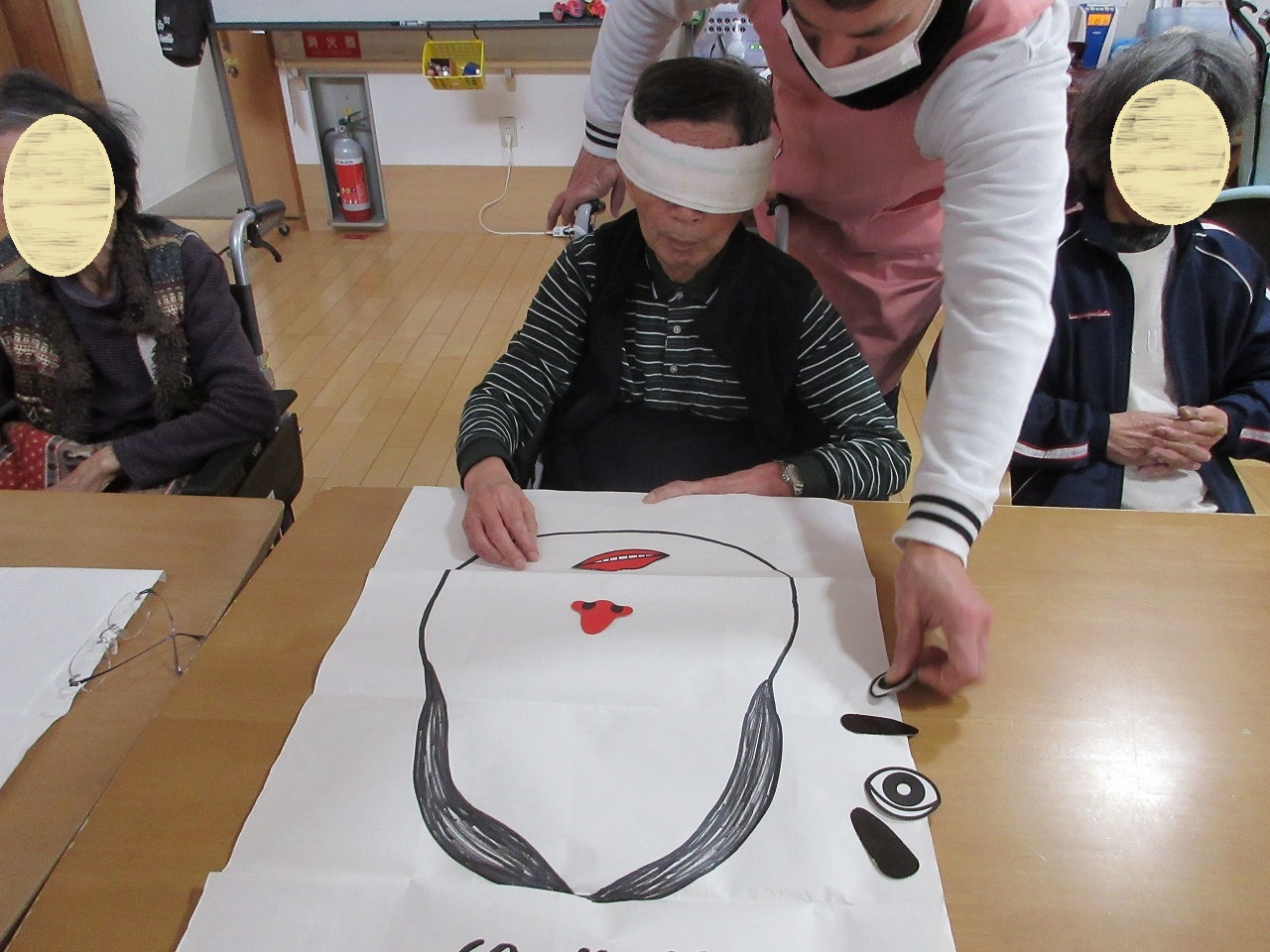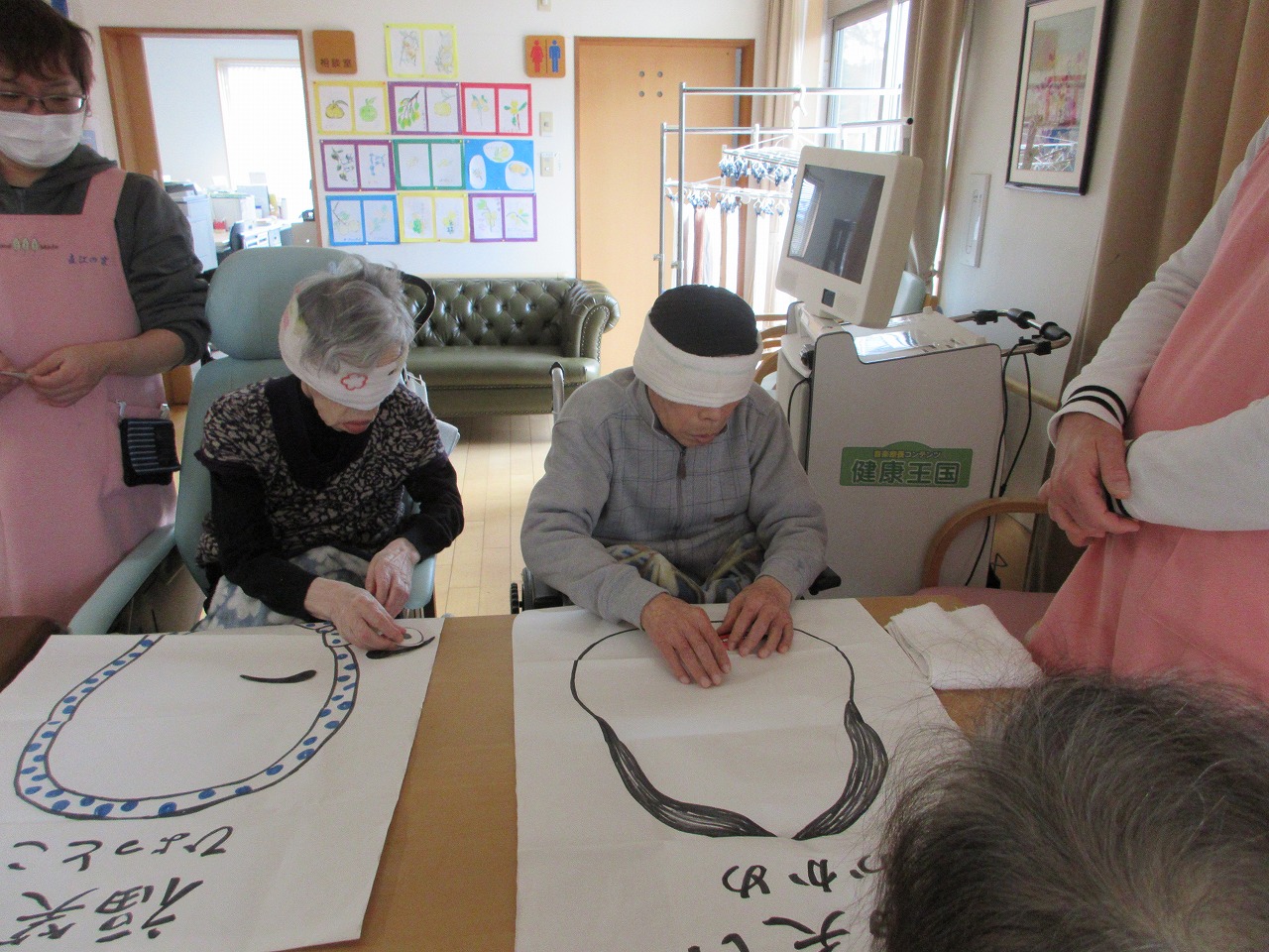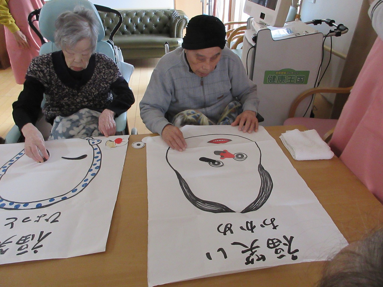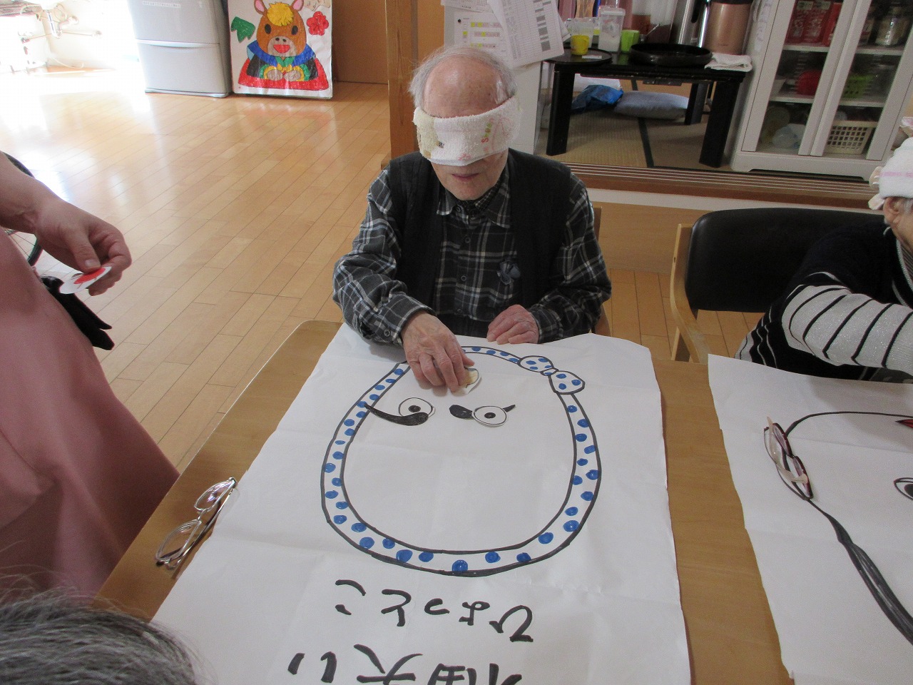 元旦、利用者様と福笑いをして過ごしました。